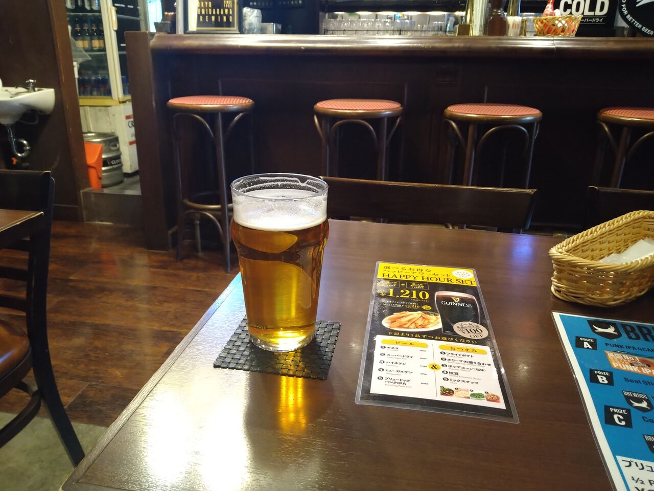 「ビール1パイント+つまみで1220円なにがし(ハッピーアワー)」!